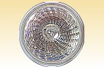In 1991 Sylvania replaced Tru-Aim Professional with the new Professional DeLuxe lamp shown on this page, following an extensive European survey as to what features customers favoured most. It features a clear lens and introduced the new spiral design of facets. By rotating each successive ring of facets around an axial filament, an impressively high beam uniformity was achieved. This gave customers the sparkle they desired but without compromising on the beam uniformity which had made its predecessor the favourite of lighting designers. At the same time, life was increased 25% to 4000 hours, and the slotted GU5.3 base was introduced. |