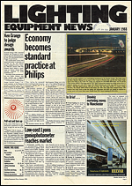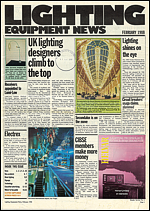 The rich era of the 1960s introduced a terrific expansion of the lighting industry, and saw a major shift from pure technical functionality towards increased aesthetics. This was fuelled by fast-moving new trends in lamps, luminaires and their applications. Lighting Equipment News was established to communicate these exciting developments to the masses. Its format evolved into the form of a broadsheet newspaper, renowned for its consistent speed in being first to report on new products and industry trends. The enthusiasm of the news sections was backed up by highly informative editorials, pitched at a technical level to interest the average specifier or installer of lighting equipment. For many years the author of this website served as the magazine's associate editor, with responsibility for light sources and control gear.